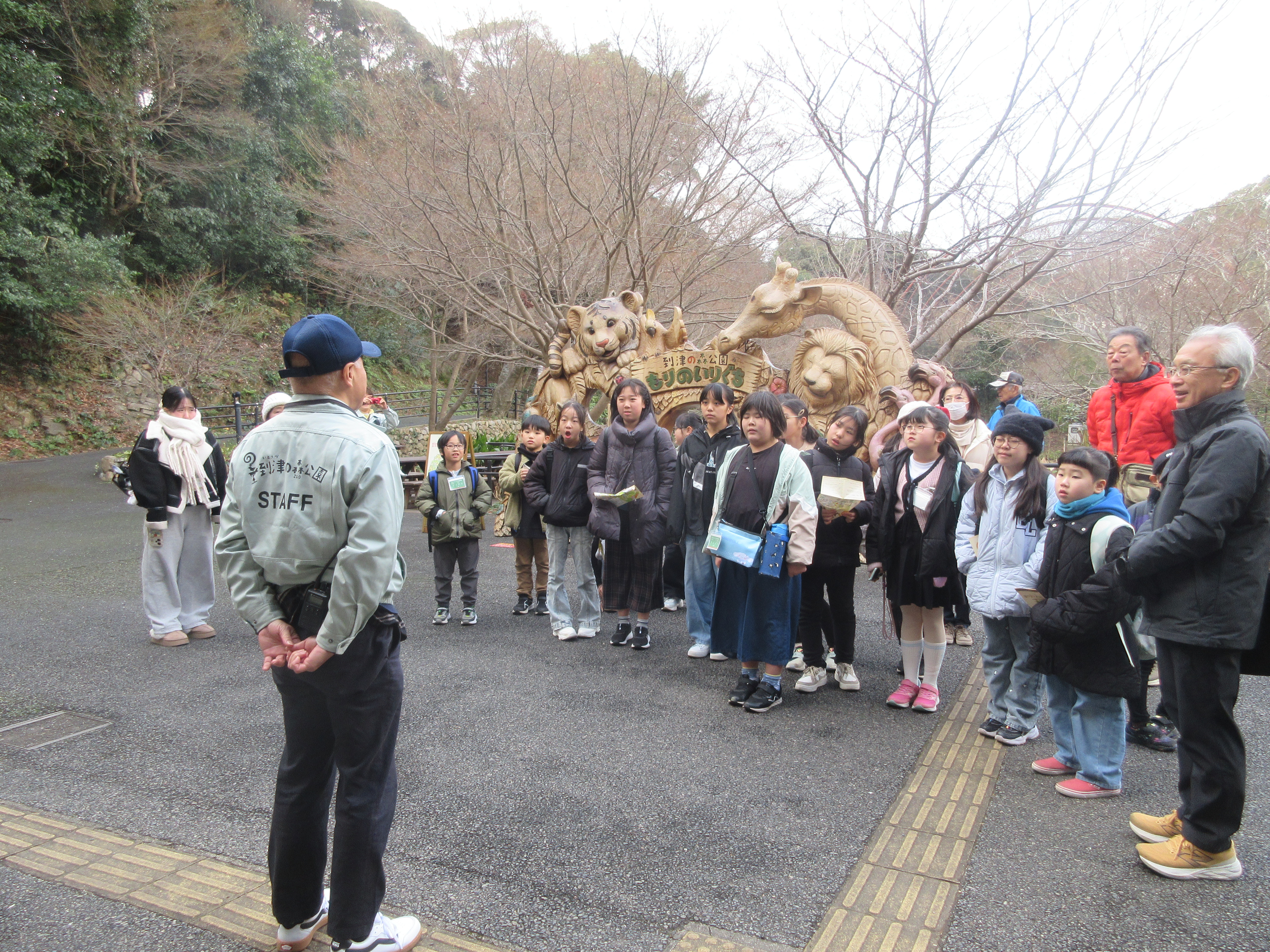 | 開催日時 | 毎月1回(6月~翌年2月) 土曜日 10:00~12:00 (館外活動等で時間変更の場合もあります) 右写真は令和8年1月24日(土)、 いとうづの森見学の様子 園長先生からの説明を聞く |