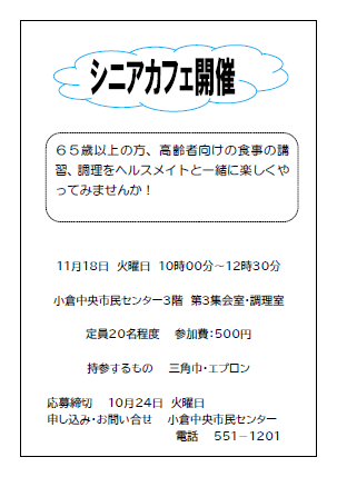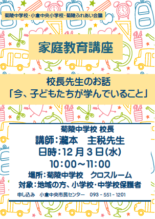 ☆令和7年4月より小倉中央市民センターの閉館時間が変更になります。ご理解とご協力をお願いします。