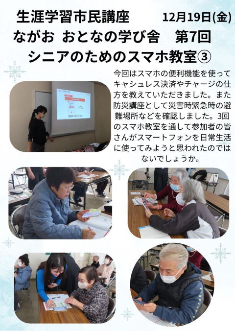 | 日 時 | 12時10分 定員20名 12時10分 定員20名 1 2026年 1月16日(金)10時30分~ 12時30分 松本清張記念館の見学 定員20名 2月20日(金)10時~12時 健康ウォーキング 定員50名 ※スマホ講座は①~③とも受講できる方を優先します。 ※未定の項目については決定次第お知らせします。 ※すべての回をまとめてお申込みいただけます。 ※キャンセルの場合は分かり次第、お早めにご連絡ください。 ※各回の開催の前には、ご連絡を差し上げます。 |