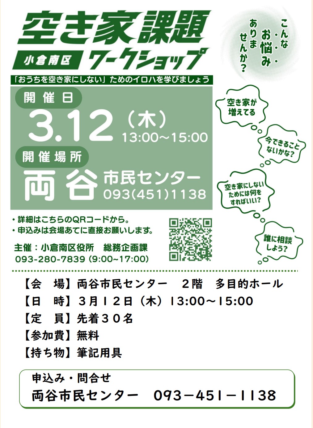| ◆空き家課題ワークショップ 淀川洋子さんを講師にお招きし、皆さんの持っている家を 空き家にしないためのワークショップを開催します。 楽しく学び、あなたの家族やまちの未来を考えていきましょう。 |