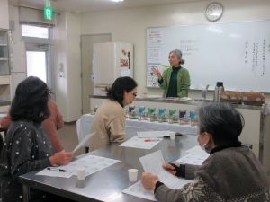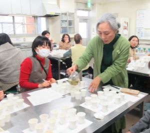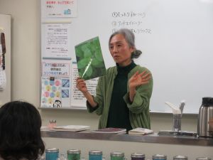 | ~こころもからだも喜ぶ~「ハーブを使った自然療法の世界へようこそ」 1月29日(木)ハーブコーディネーター山下智世さんを講師に「ハーブを使った自然療法の世界へようこそ」の講座を行いました。ハーブの歴史や海外の病院事情などさまざまなお話を聞き、ブレンドした12種類のハーブティを試飲しました。薬を飲んだり、病院にかかる前に自分の体は自分で守るために身体を整えることが大切だというお話にみなさん納得、12種類のハーブティの中で1番人気だったのは「心も身体もリフレッシュ」するでした。ハーブティの効能で心も体も元気になりましょう。わかりやすいお話、ハーブティに癒されて大満足の2時間でした。 |