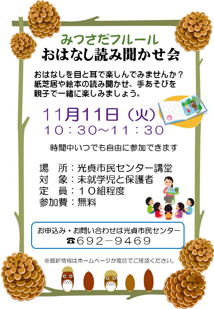 | 【みつさだフルール】 「”おはなしたまてばこ”の読み聞かせ会」 |