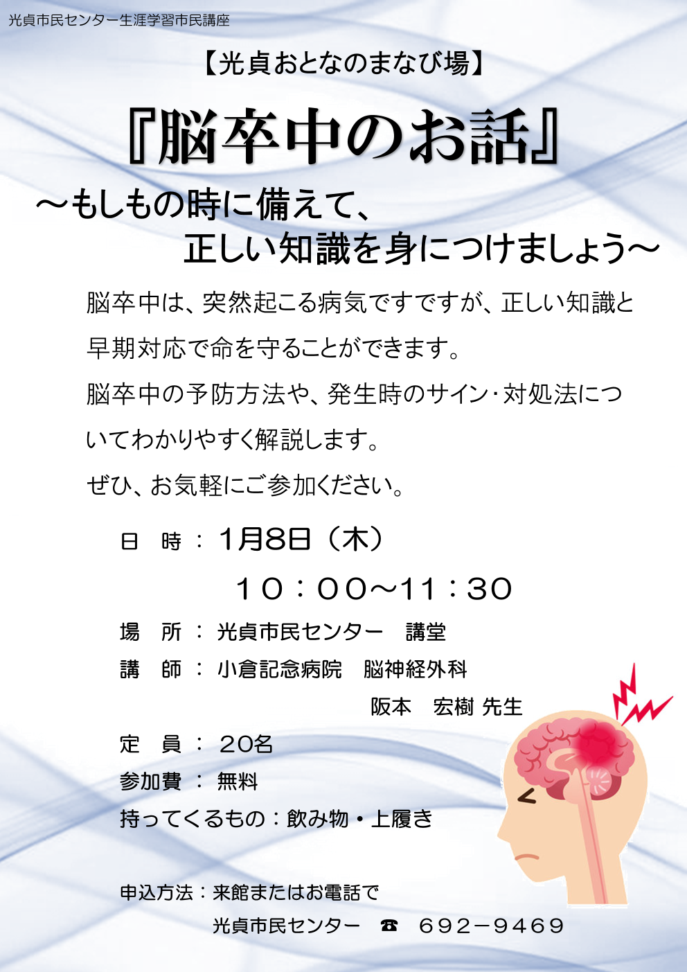 | 【光貞おとなのまなび場】 「脳卒中のお話」 |