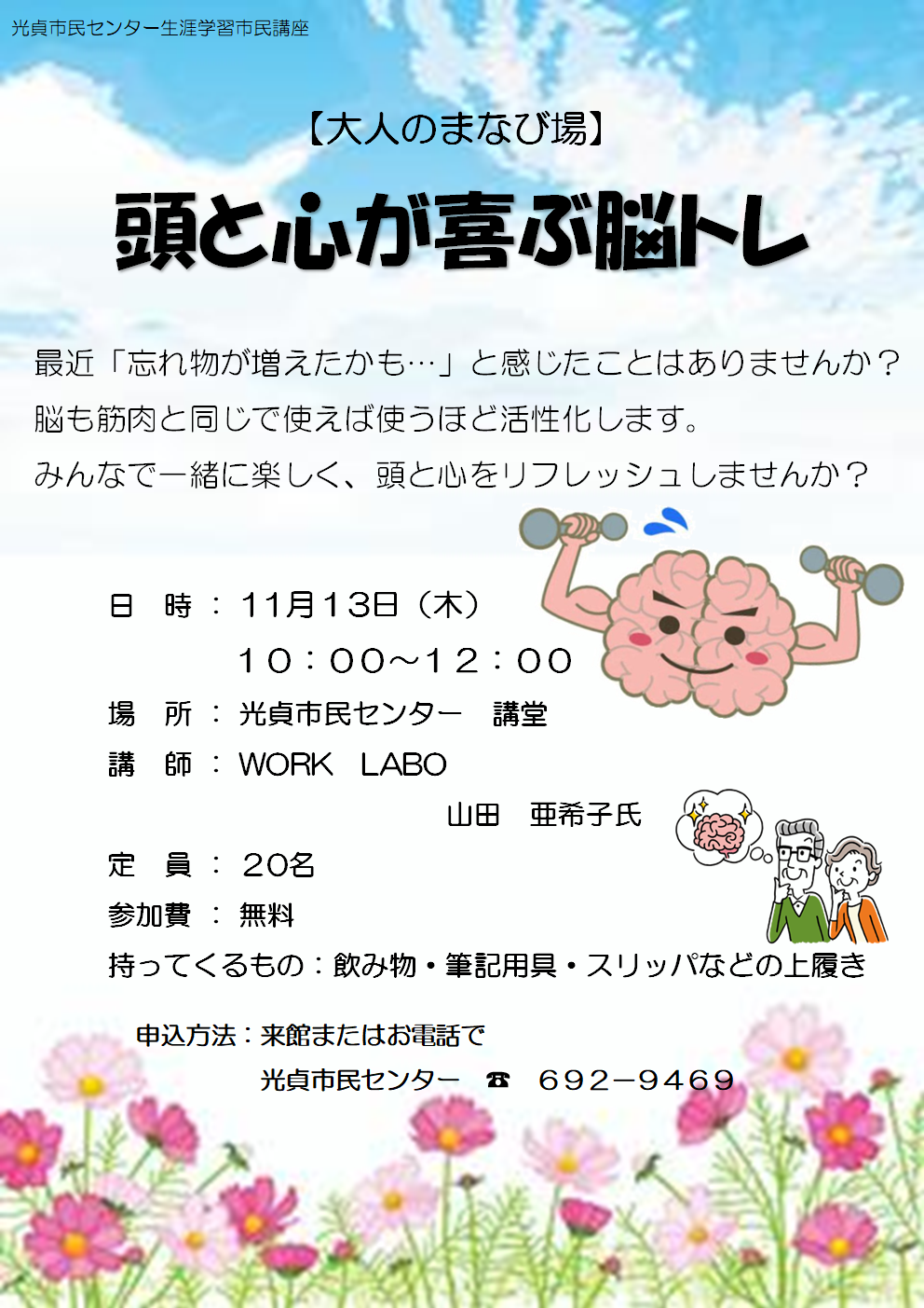 | 【光貞おとなのまなび場】 「頭と心が喜ぶ脳トレ」 |