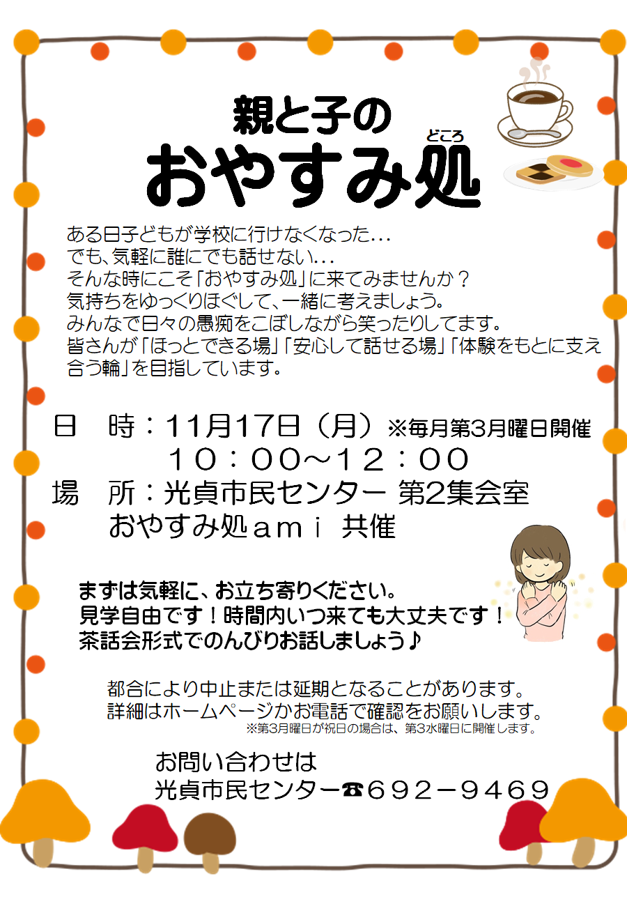 | お申込み | 光貞市民センターへ電話 または、来館 |