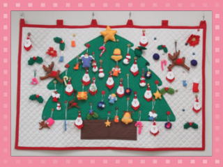 1階キッズスペースに子育てボランティア手作りのクリスマスタペストリーを