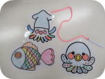 こどもと一緒に、色を塗ってかわいい お魚さんたちを作って遊びましょう。 |