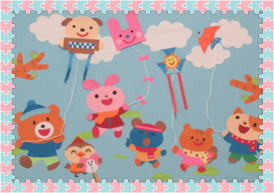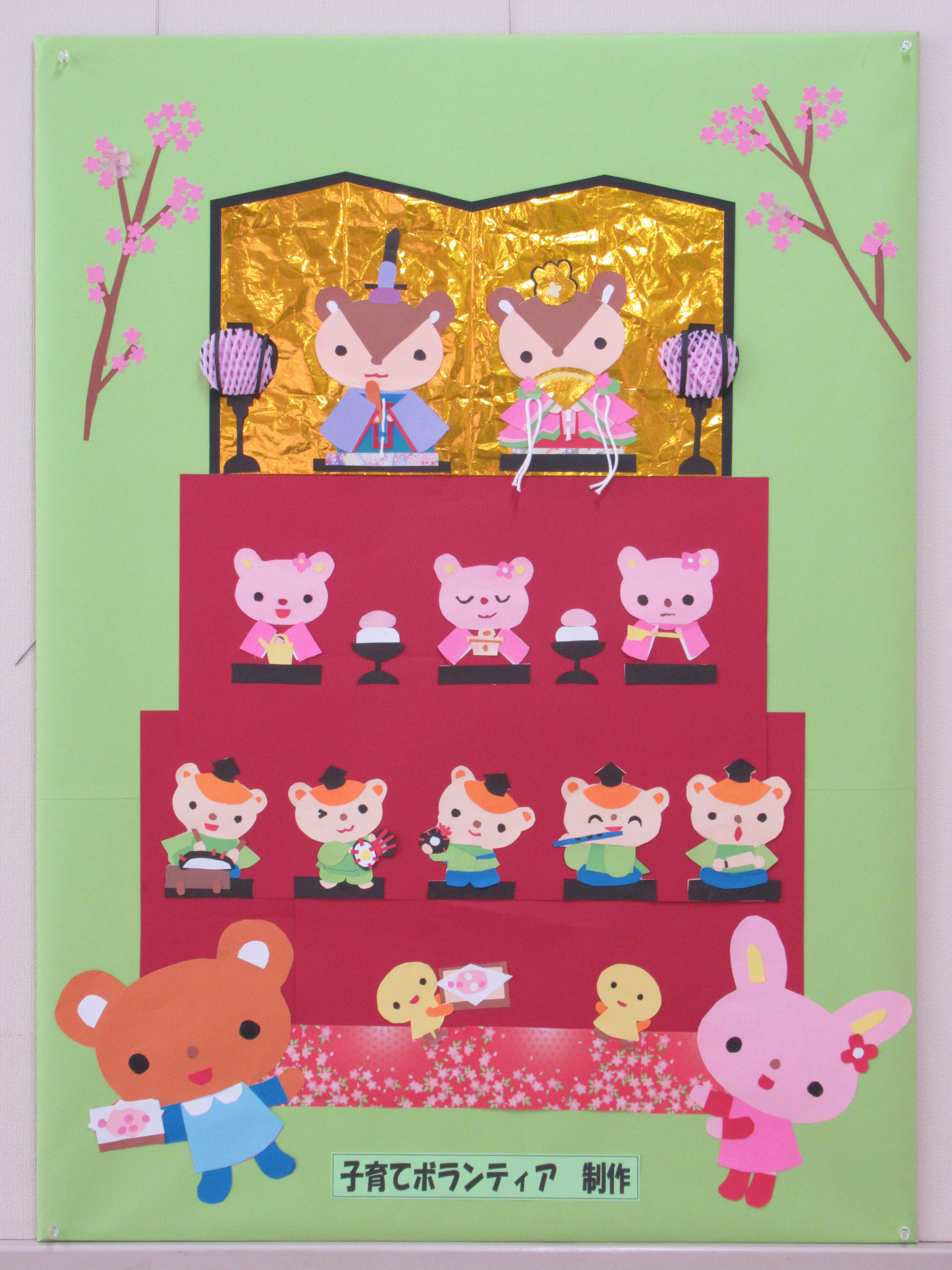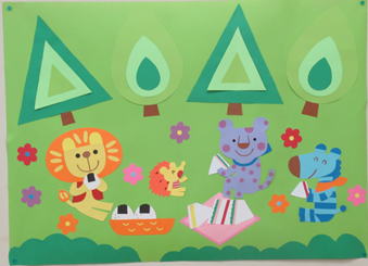 1階キッズスペースに子育てボランティア手作りの壁紙を