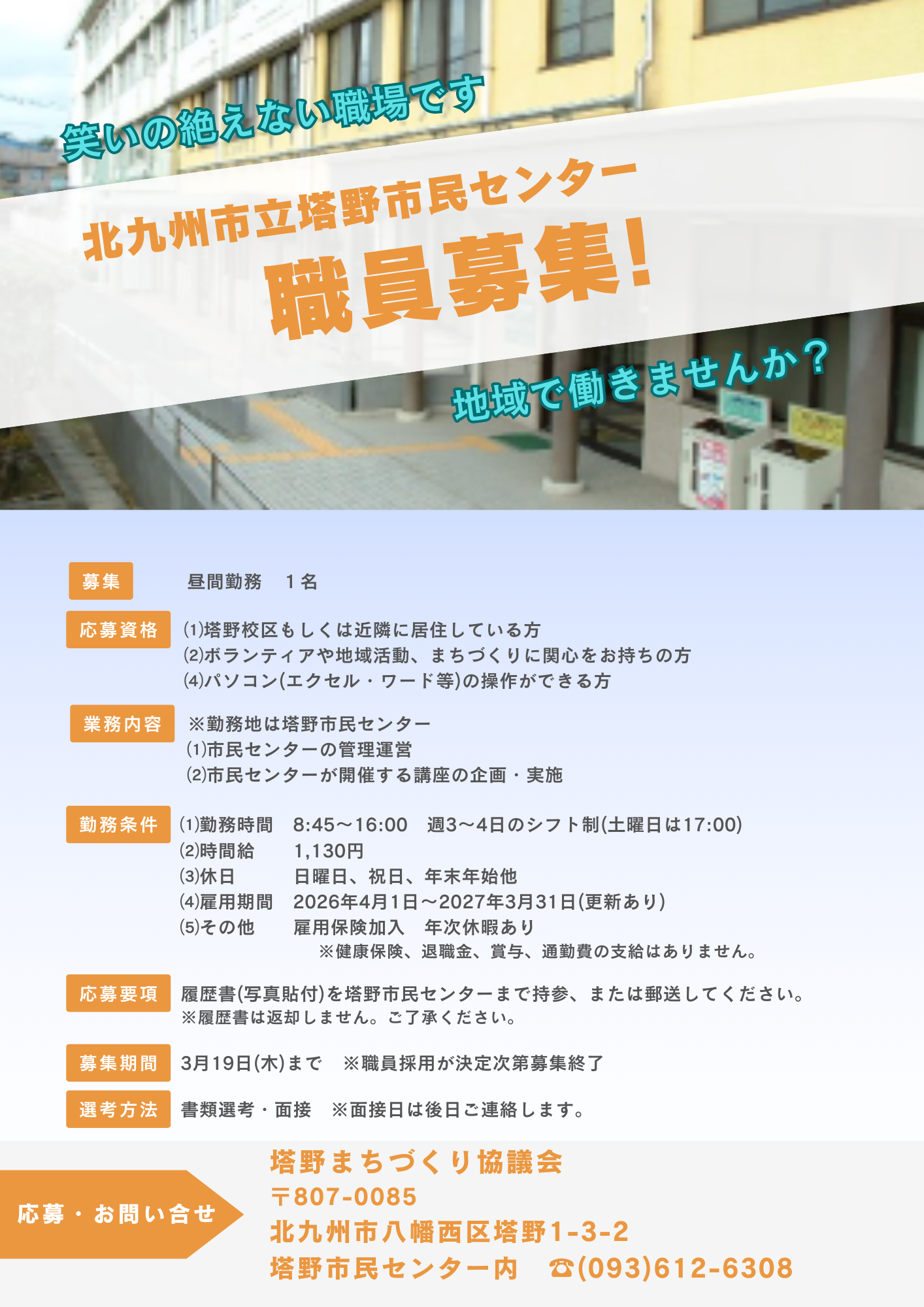 塔野市民センターは地域の皆様のよりよい暮らしのために尽力してまいります