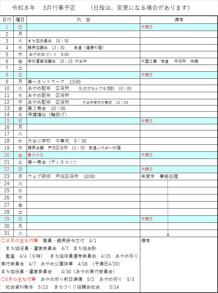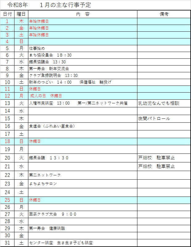 休館日:日曜日